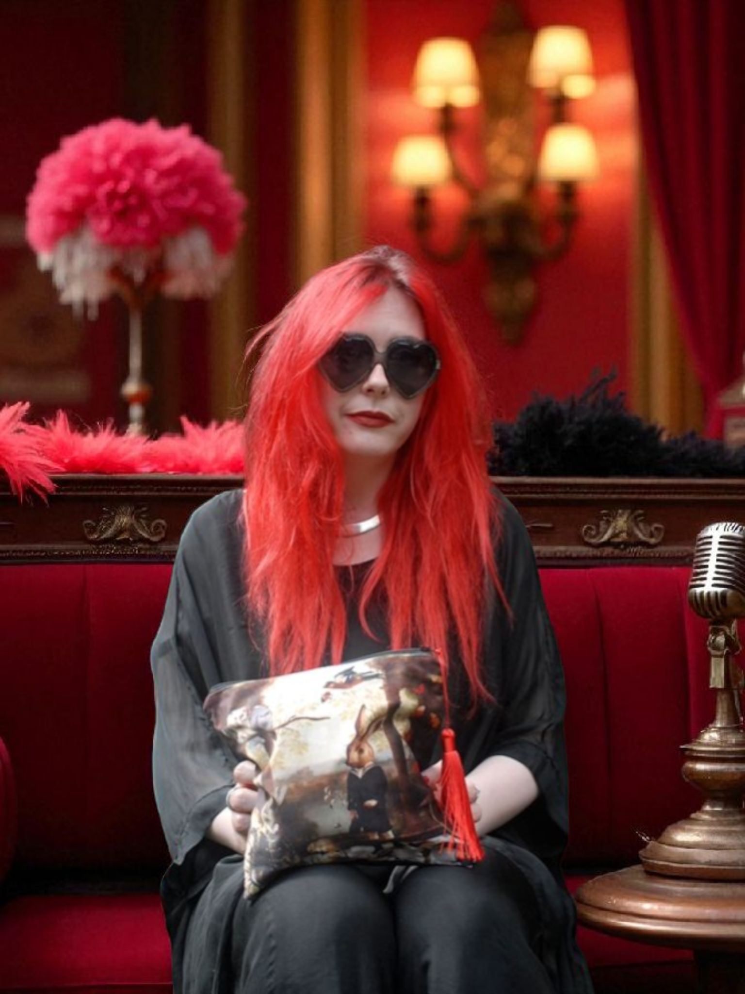 'A Day Out in the Woods' Velvet Clutch Bag with Red Satin Tassel