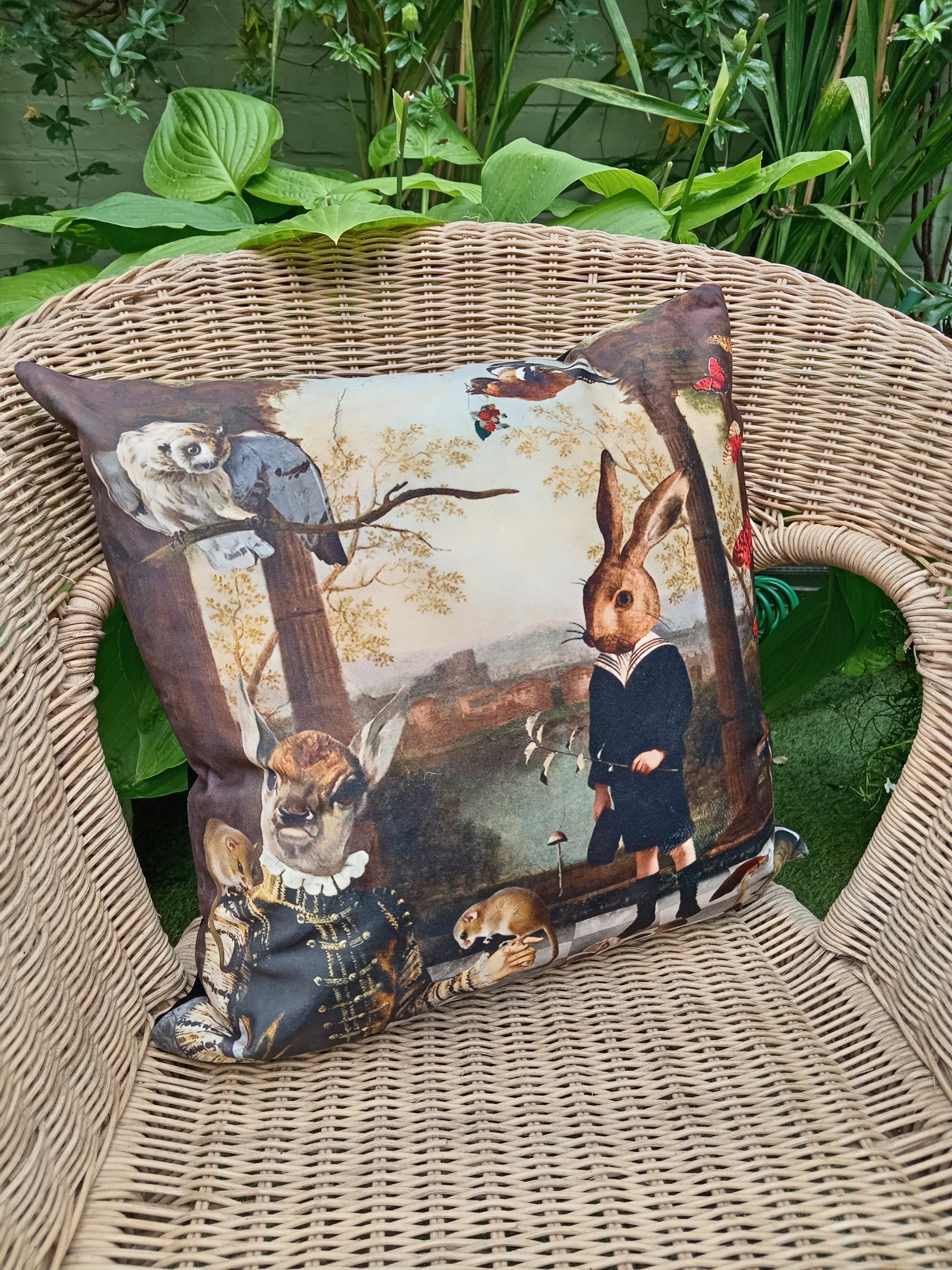 All our cushions are 45cm square with a plump duck feather inner, and zipped removable cover.