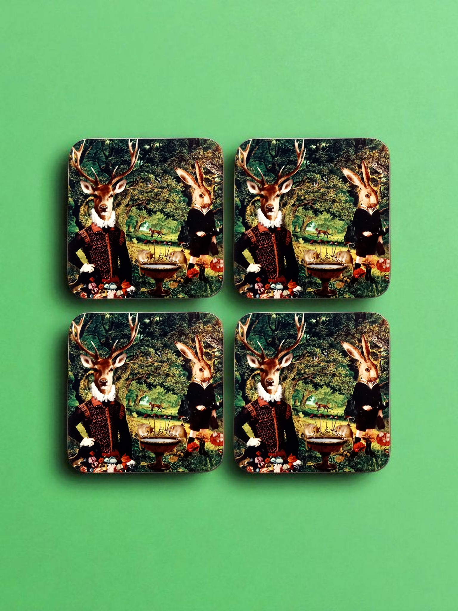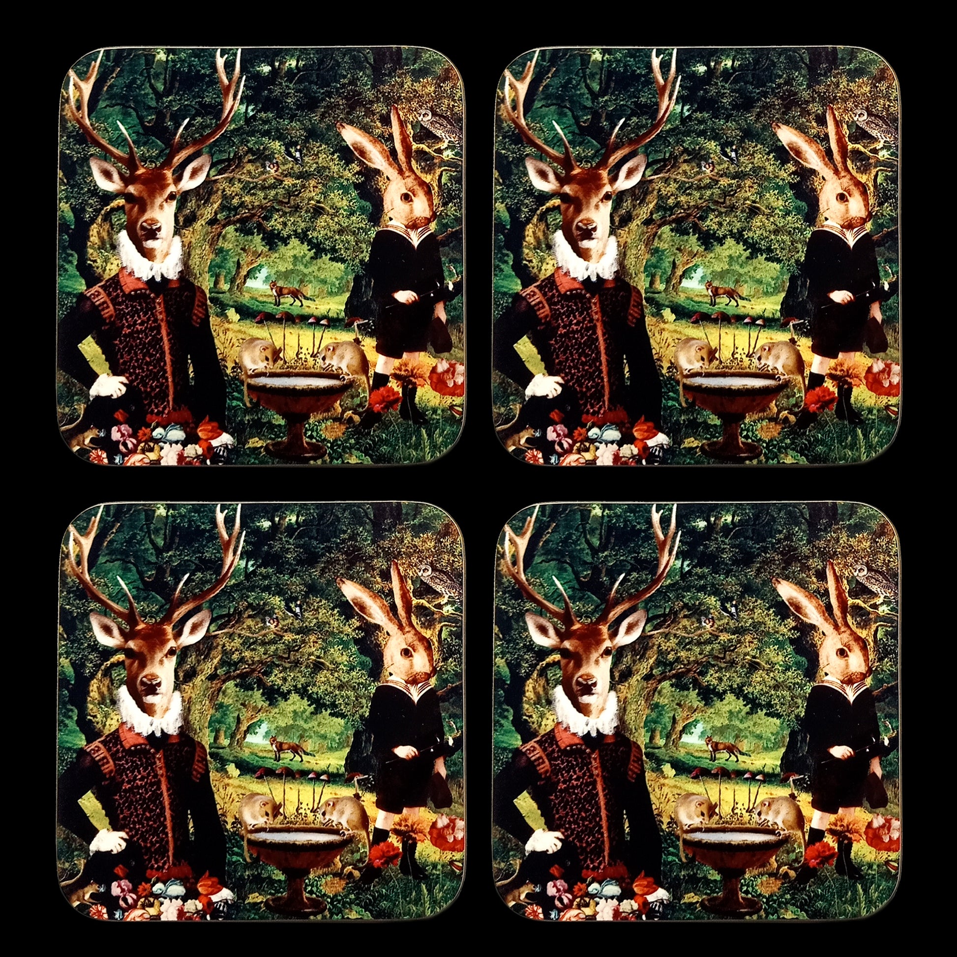 Add a splash of artistic flair with our set of four high gloss wooden coasters.