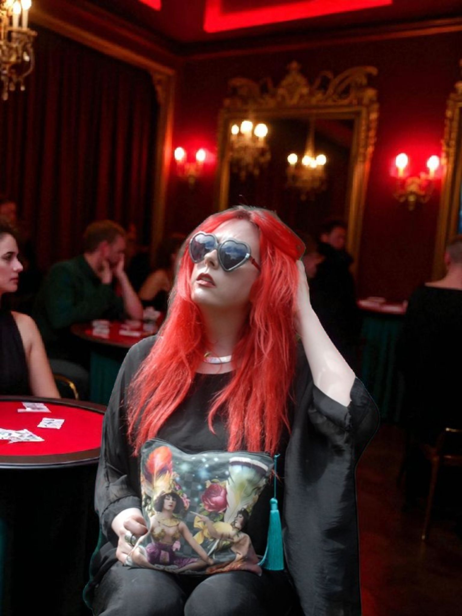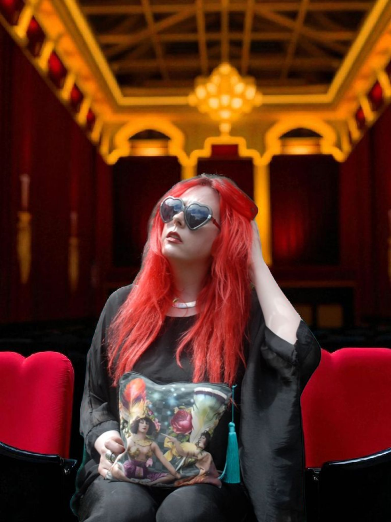 'The Yoga Girls' Velvet Clutch Bag with Turquoise Satin Tassel
