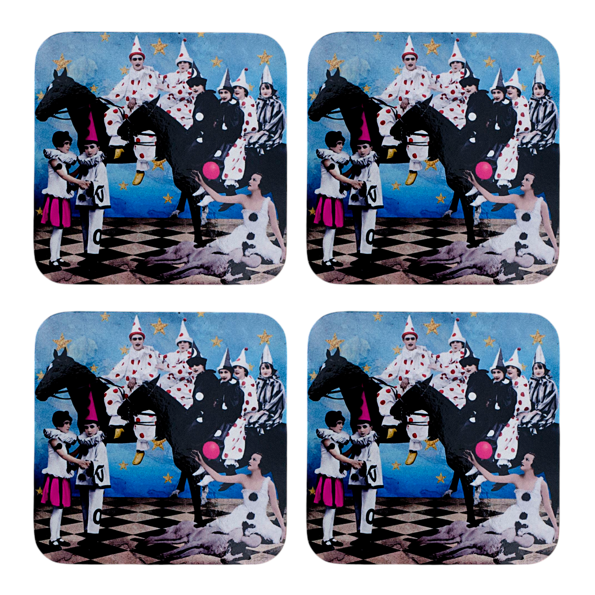 Add a splash of artistic flair with our set of four high gloss wooden coasters.