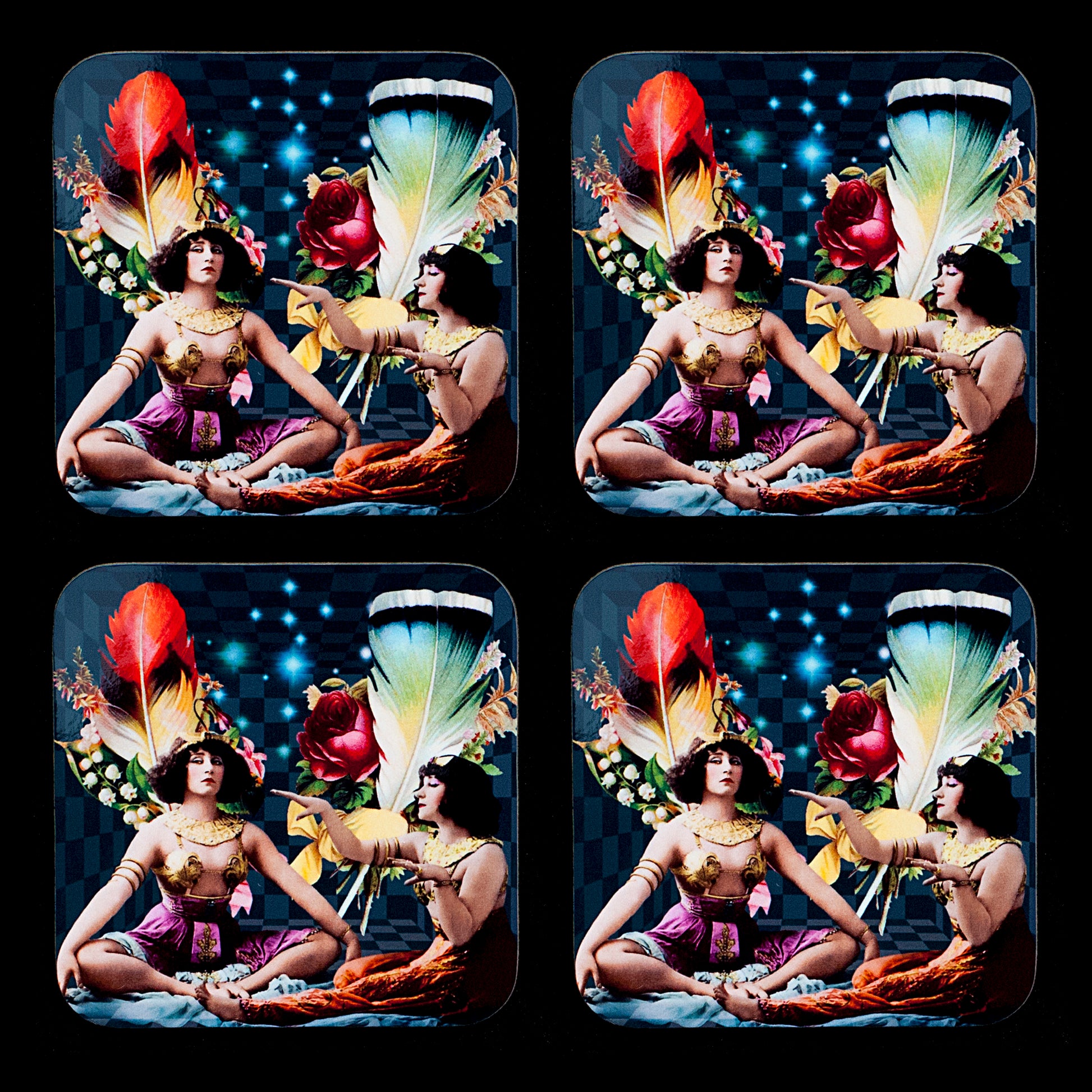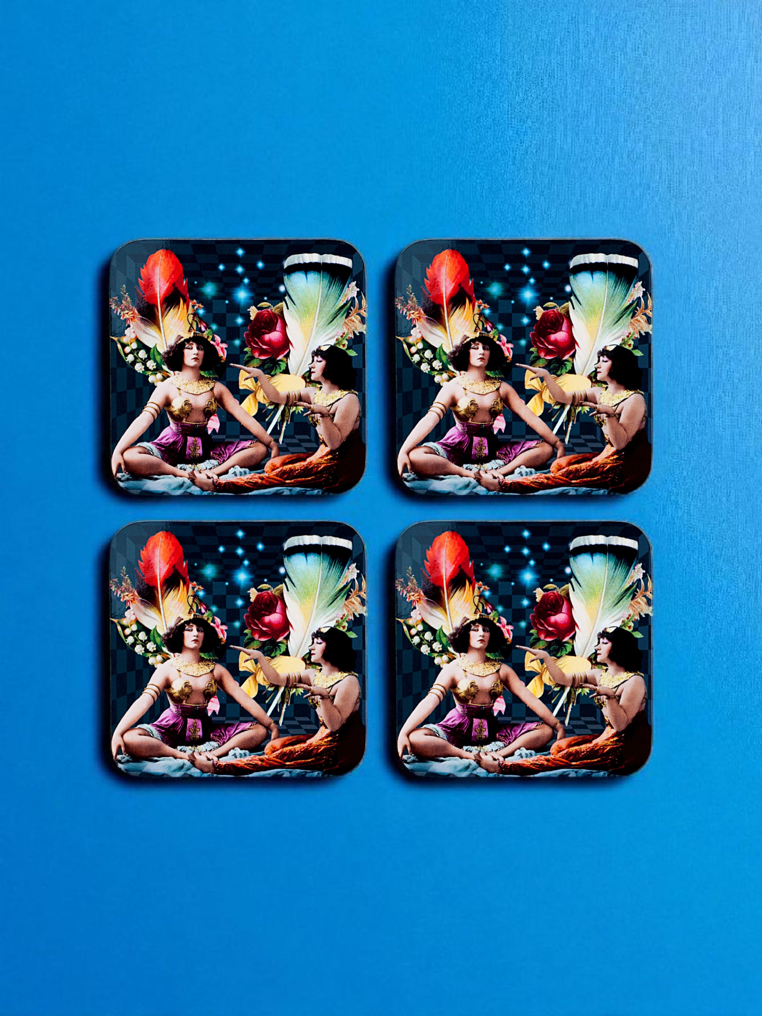 Add a splash of artistic flair with our set of four high gloss wooden coasters.