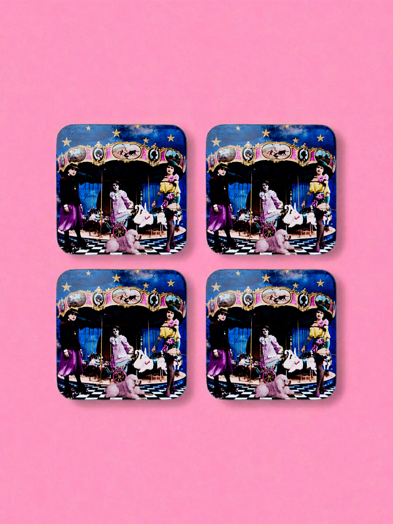 Add a splash of artistic flair with our set of four high gloss wooden coasters.